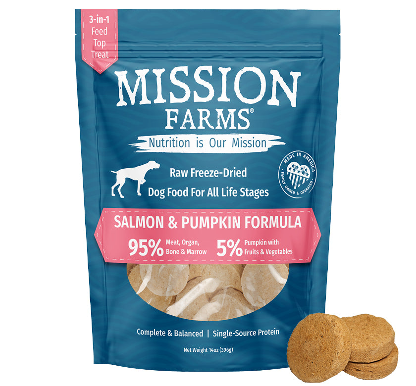 Whole Ground Salmon, Pumpkin, Coconut Flour, Mixed Tocopherols (Preservative), Rosemary Extract, Carrot, Apple, Tomato, Shitake Mushroom, Broccoli, Orange, Cranberry, Spinach, Beet, Tart Cherry, Strawberry, Blueberry.