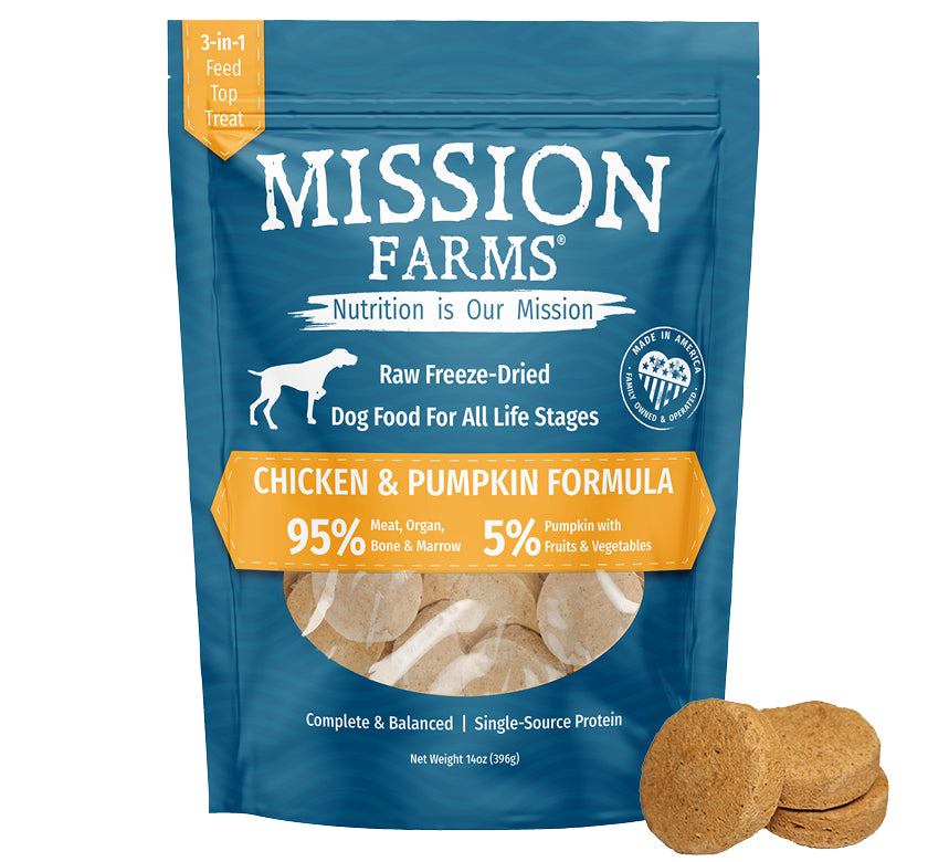 Chicken, Chicken Heart, Chicken Liver, Pumpkin, Chicken Bone and Marrow, Mixed Tocopherols (Preservative), Rosemary Extract, Carrot, Apple, Tomato, Shitake Mushroom, Broccoli, Orange, Cranberry, Spinach, Beet, Tart Cherry, Strawberry, Blueberry